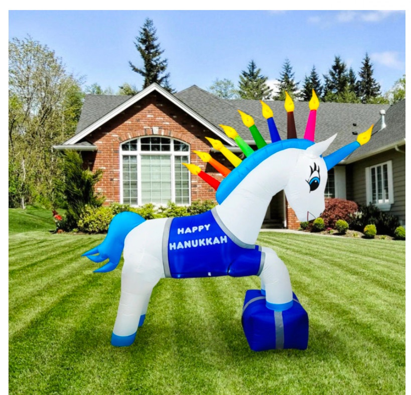 There are also hybrid symbols, combining Chanukah and Christmas symbols into one, as in chanukiot depicting Santa and the reindeer.